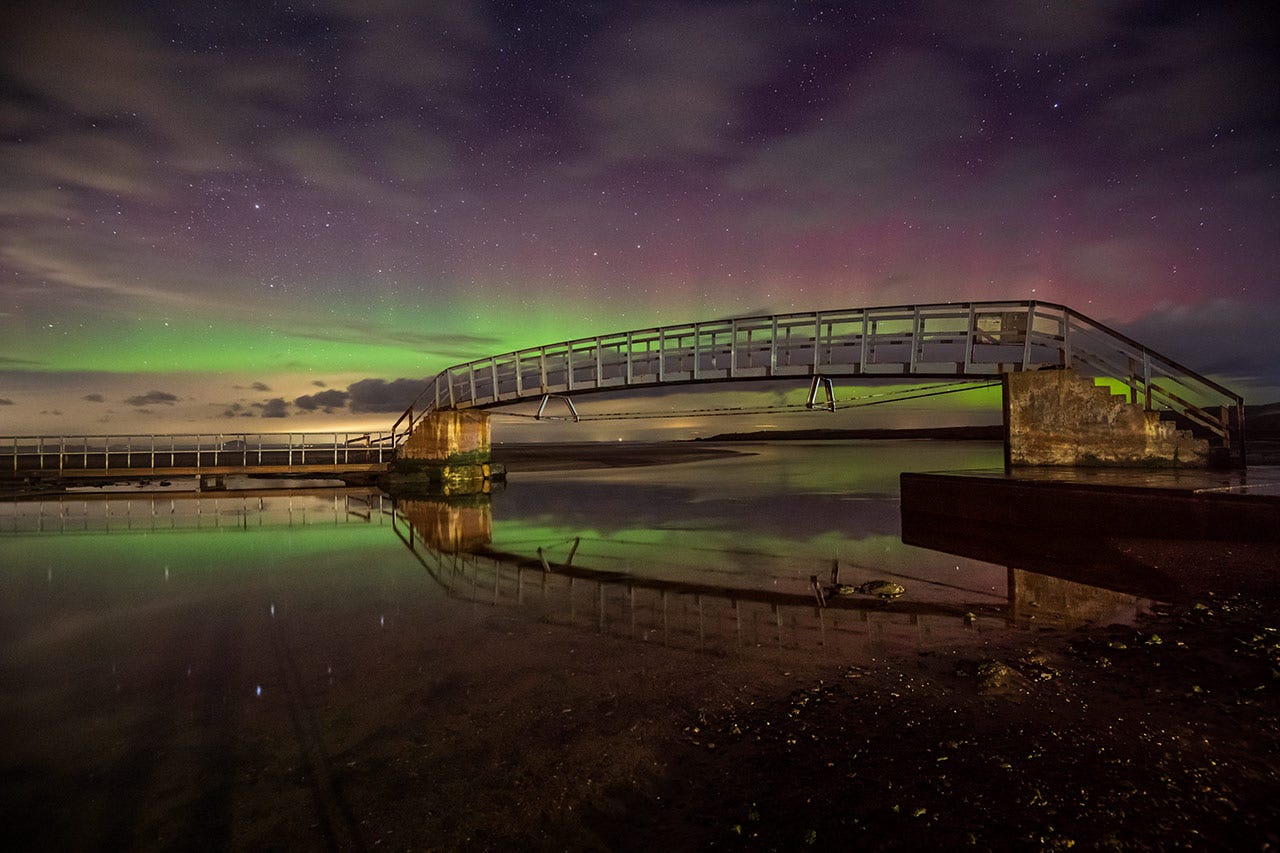 January - The “Bridge To Nowhere” at Belhaven with the Northern Lights kicking off in the night sky behind.