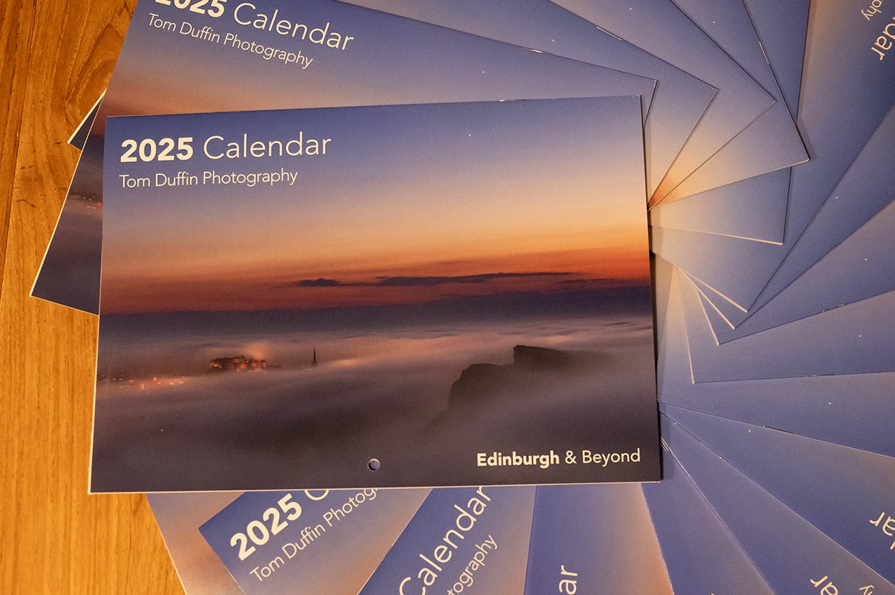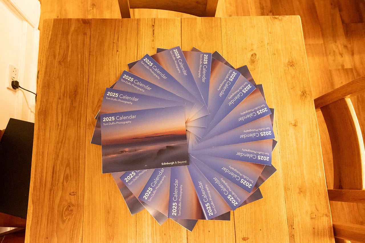 So there you have it. A year in and around Edinburgh, presented beautifully in print and available for your home, the homes of your loved ones and your very favourite friends. Here they are laid out on the kitchen table ready for dropping into envelopes with your name on.