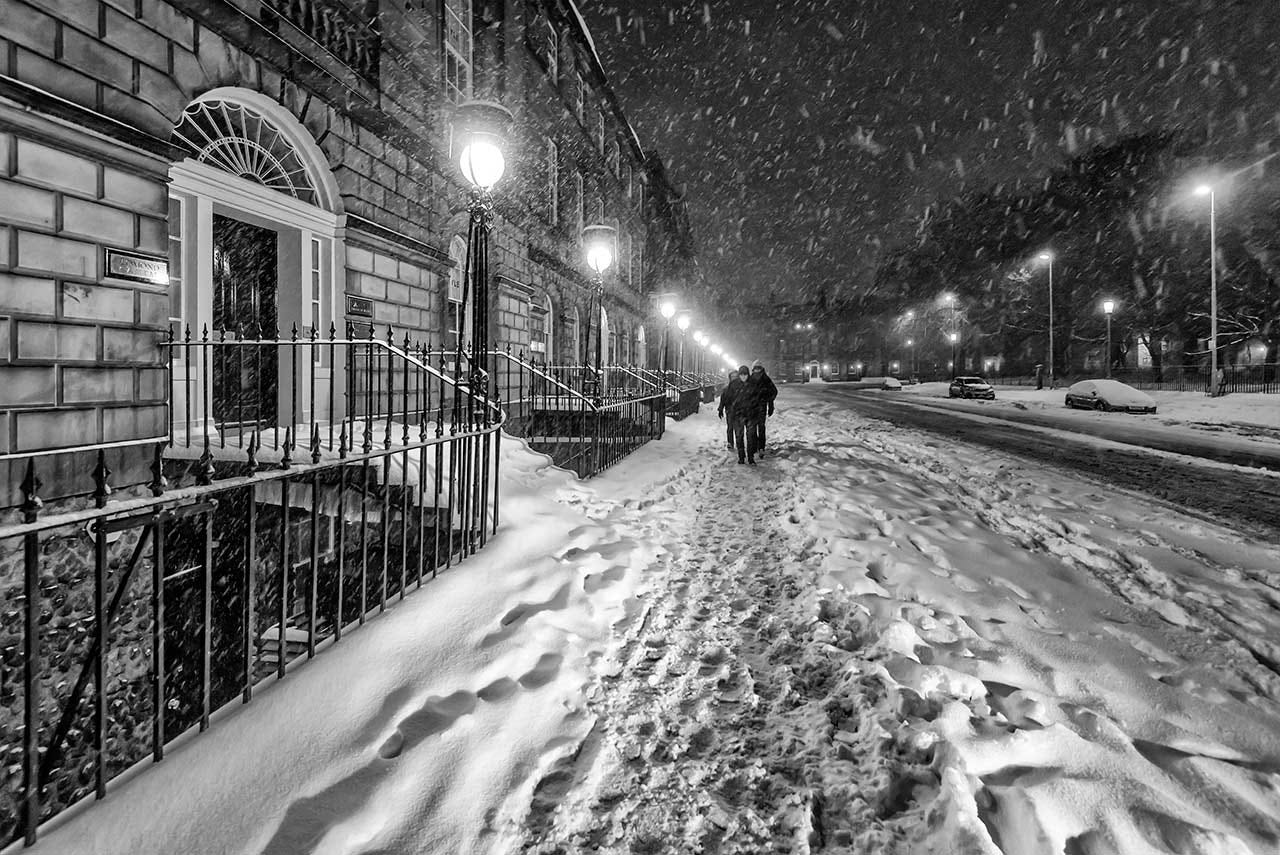 Edinburgh’s New Town is place of formal regularity: clean lines and patterns, so it was a fantastic place to witness the snow softening its edges, disguising the regular patterns and creating new ones. These visitors trudged towards me in strict single file as if on an arctic expedition, taking turns to break trail at the front. Oh, I hope we get more this winter, or it will be one of discontent.